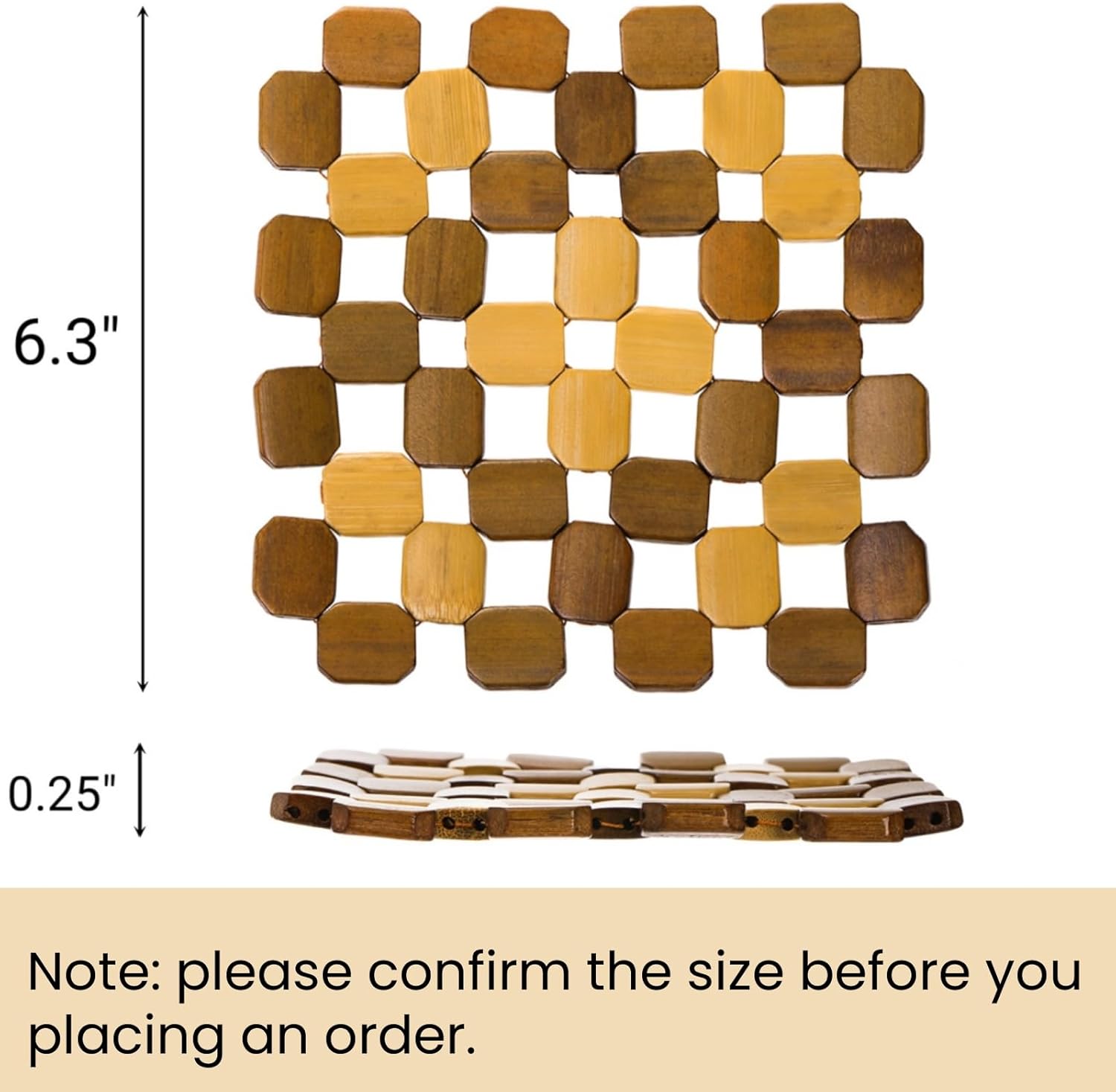 - Value Pack: You will get 12 packs of bamboo trivet mats which measure 6.3 (L) x 6.3 (W). They are perfect for small hot pots or pans and are easy to store. Sufficient quantity can satisfy your different needs to put them in a variety of places, like kitchen counter or dining area.