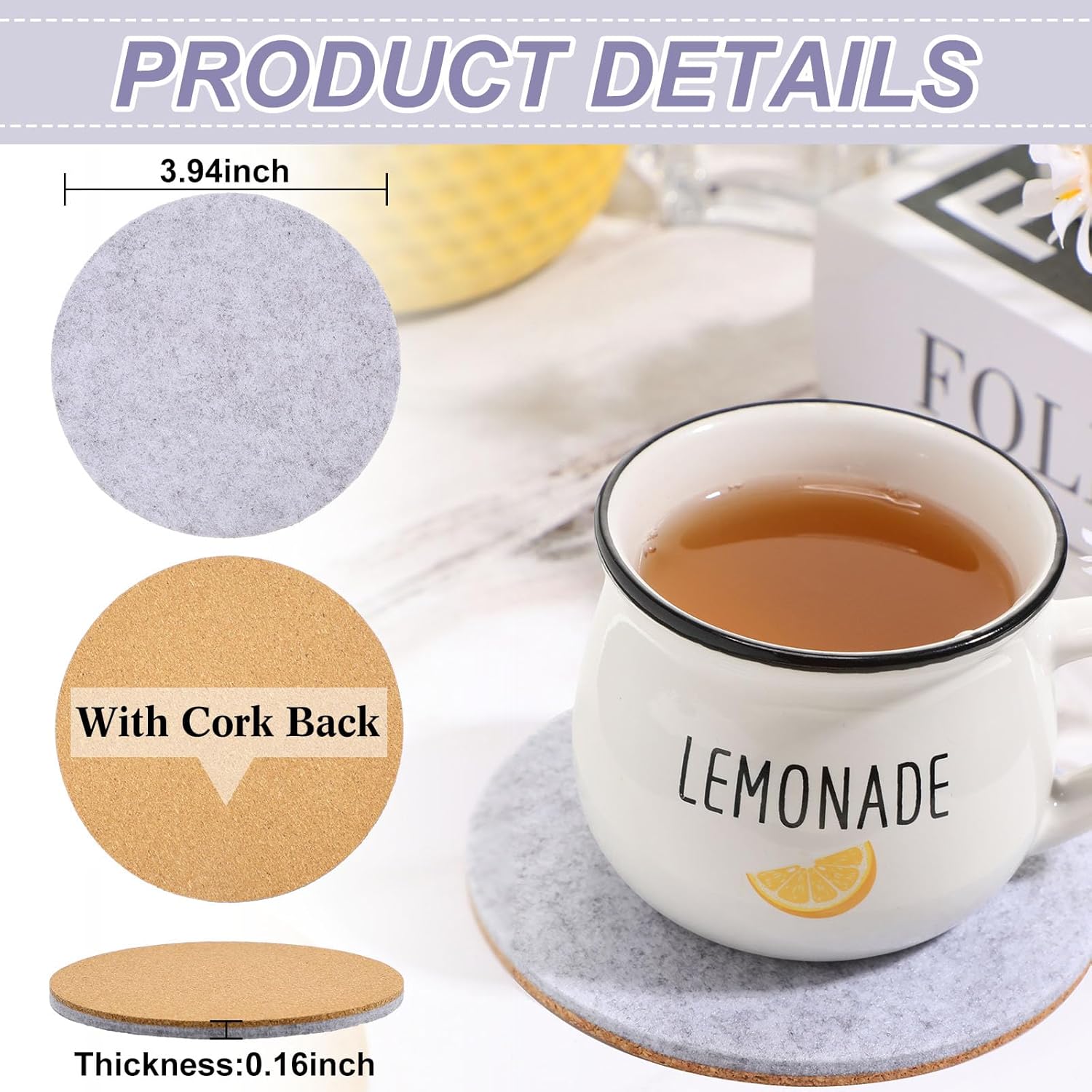 - Rugged: these gray felt and cork coasters are so absorbent that they effectively absorb water and prevent water rings and stains on the surface; These absorbent coasters are applied for more than just saving your table; Alternatively, thick felt coasters can be applied for hot pans or placed on the desk