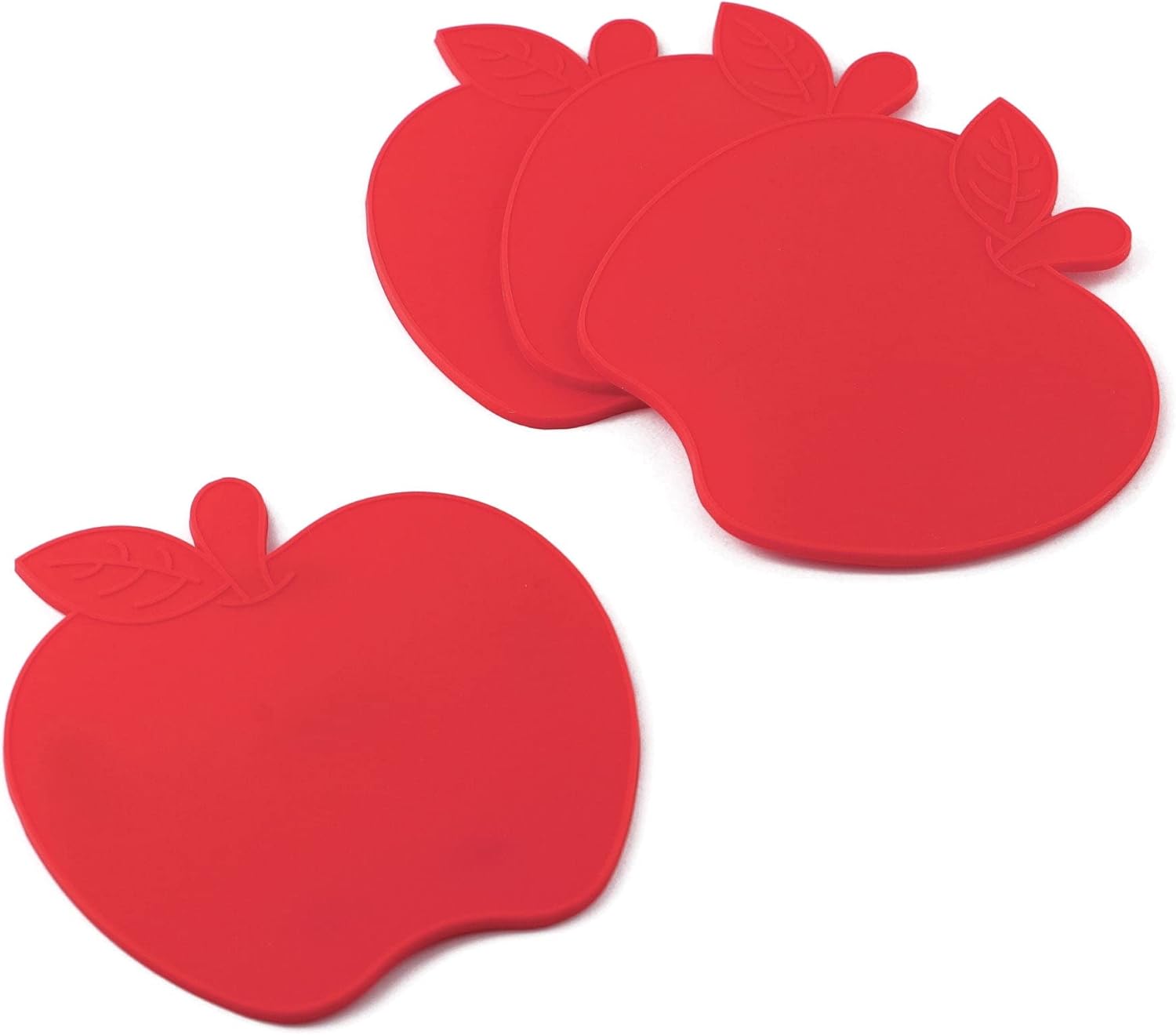 Apple-Shaped Silicone Drink Coasters – Non-Slip, Anti-Stain, Heat-Resistant, Reusable Coasters for Drinks, Red, 4.25 x 4.25 Inches, Set of 4