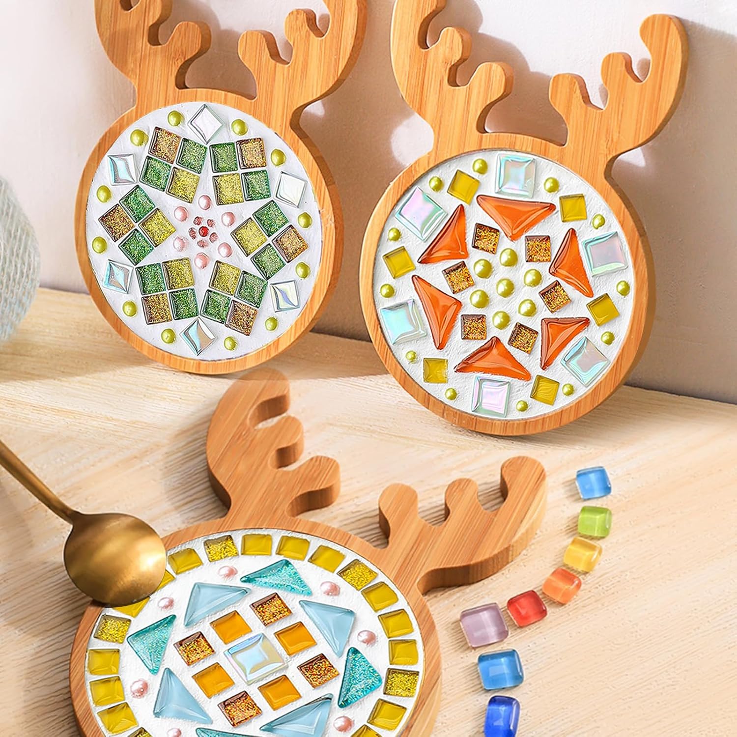- Package Inclued >> Pack of 3 Elk-shaped base coasters (Mosaic Tiles Not Included)