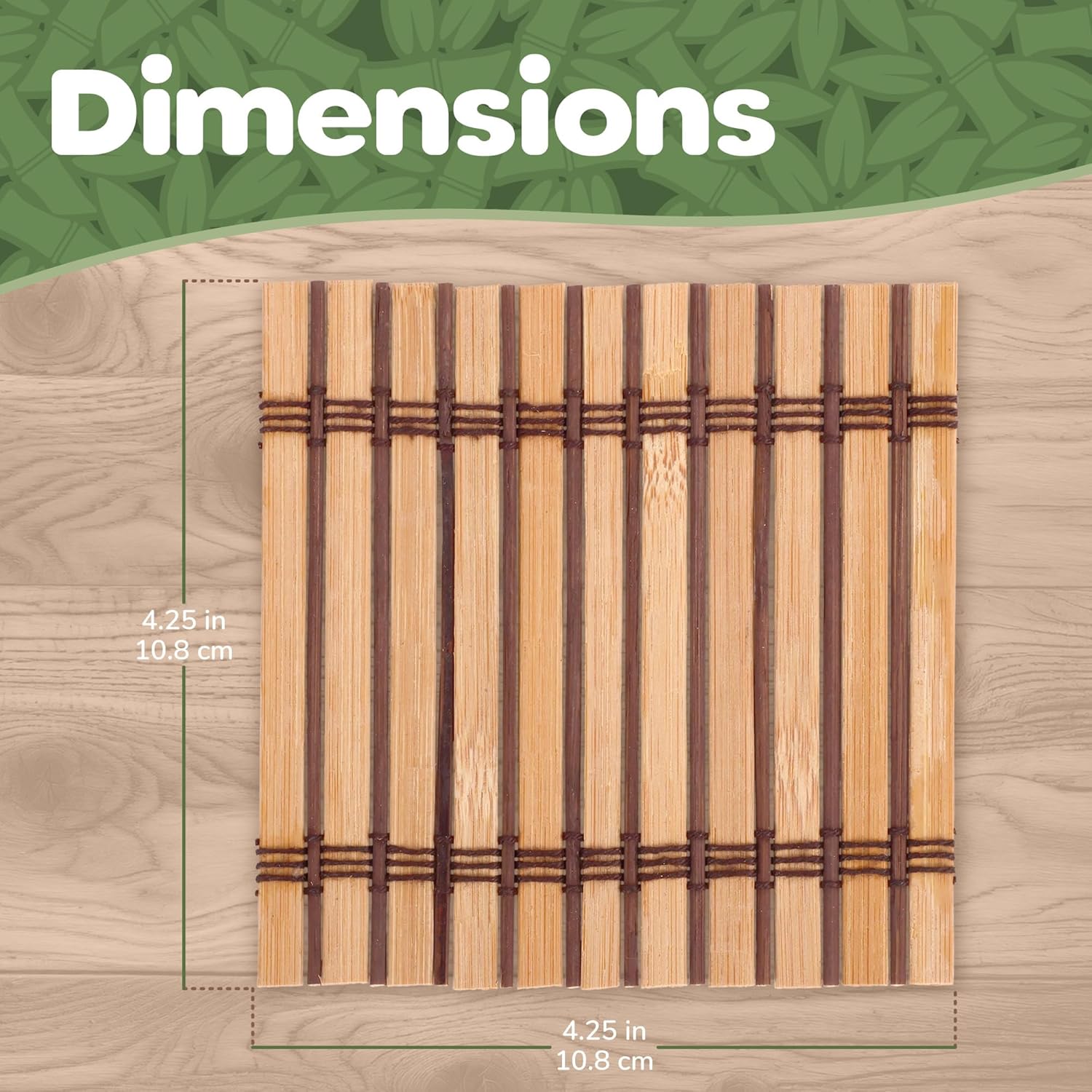 Premium Bamboo Slat Coasters – 4.25″ x 4.25″ – Dark Tan – 12 Pieces