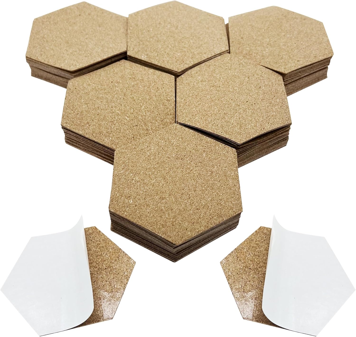Self-Adhesive Mini Cork Tiles Mat for Coasters, Hexagon Cork Backing Sheets (60 PCS)