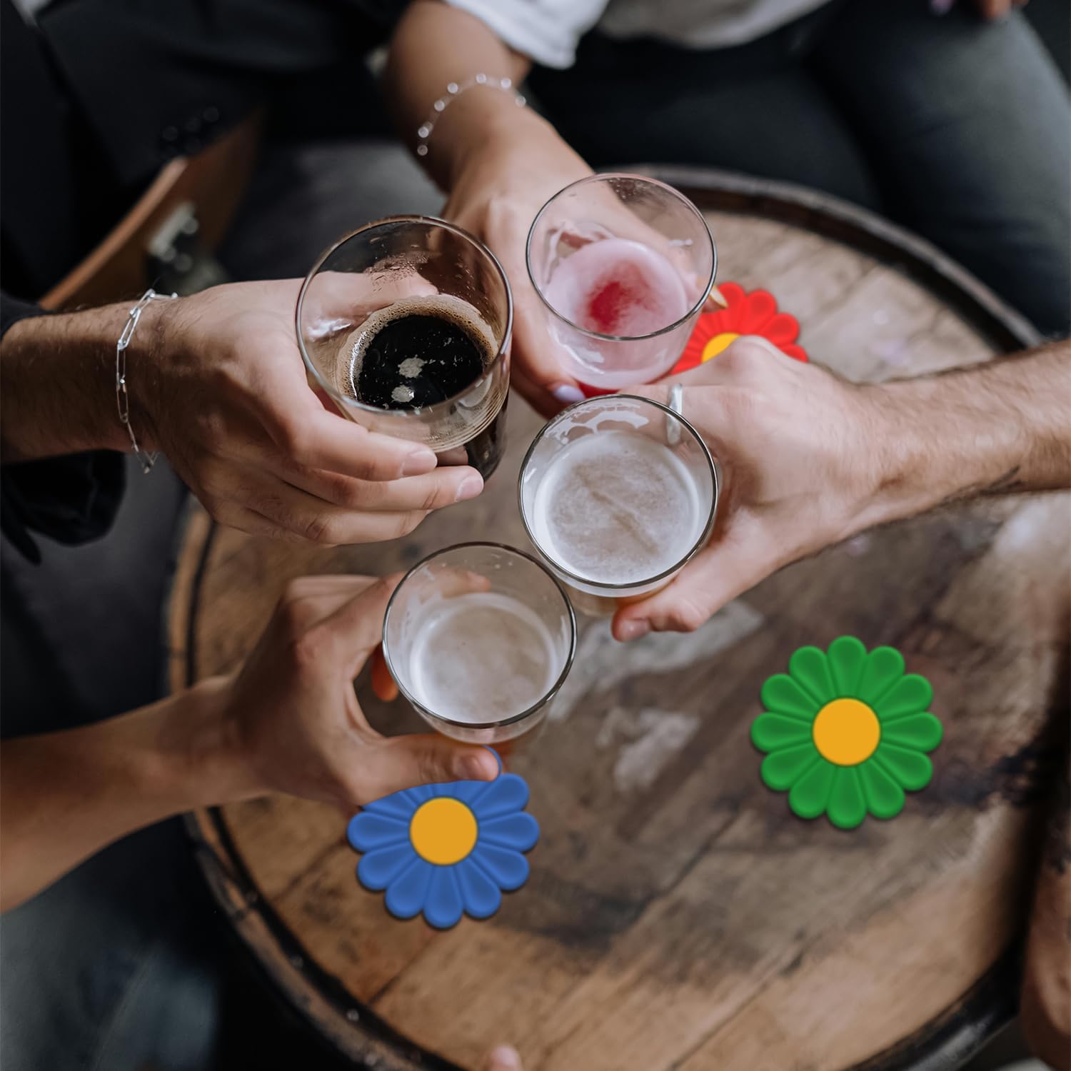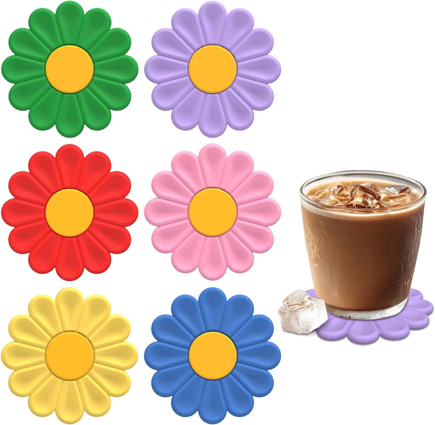- Anti-slip, Heat Resistant,Non-Stick Coasters: d with 12 petal groove patterns, the middle flower center is solid to prevent the cup from sticking to the coaster. It can be used on both sides, anti-slip and thickened.heat-resistant from -40°F to 446°F, perfect for hot and cold drinks. The surface of the soft drink coasters protects the tabletop from being burned or scratched by high temperatures.