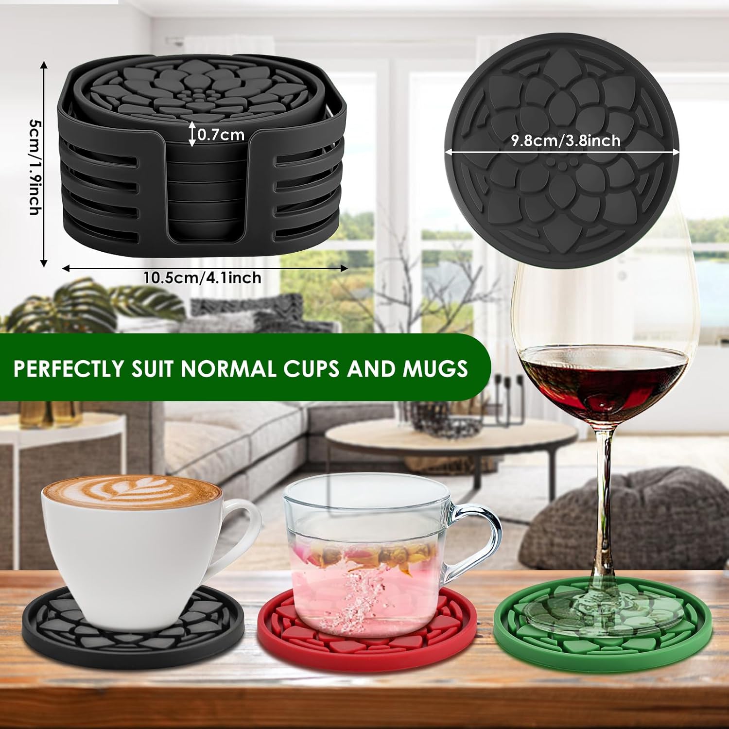 - 【Good Protection】 The flexibility and durability of silicone ensures they can be used for cold or hot drinks at any indoor or outdoor occasion. The cup coasters can be used on tabletops of any materials, like wood, glass, bamboo, soapstone, marble, stone tables and so on. They will completely protect the surface of your kitchen counter, tabletop, office desk, bar desk or other types of furniture from nasty marks or scary scratches.