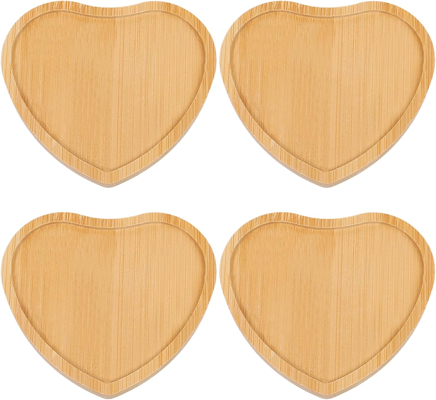 Wood Coasters Set of 4 – Handcrafted Drink Coaster Thick Heat-Resistant for Office, Bar, Farmhouse – Natural Bamboo Drink Unique Cup Coasters for Table Protection (Heart-Shaped)